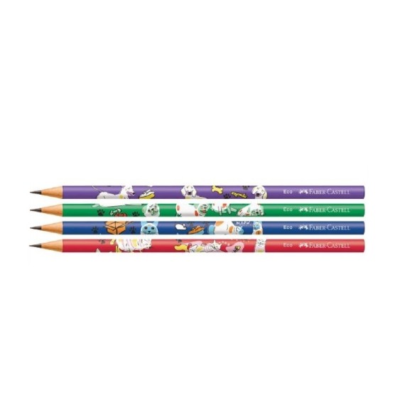 Ecolápis grafite Pets / 4 Opções de estampas (cães e gatos) / Formato redondo / Registro Inmetro: 003666/2012, OCP0003.