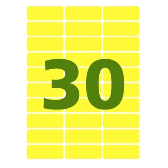 Tamanho da etiqueta: 25,4mm x 66,7mm / Etiquetas por folha: 30 / Embalagem com 10 folhas / Cor da etiqueta: Amarelo Fluorescente