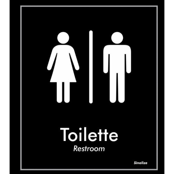 Placa sanitário unissex masculino/feminino / Medidas: 15x18cm / Embalagem contém: 1 placa / Material: Poliestireno / Impressão: Serigráfica / Fixação: Autoadesiva.