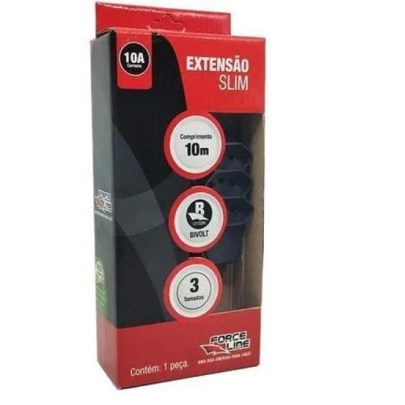 EXTENSÃO TRIPOLAR 3 TOMADAS BIVOLT 10MTS 200316 FORCE LINE