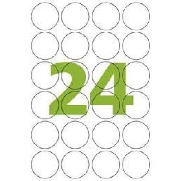 Tamanho da etiqueta: 42,33 x 42,33 mm / Etiquetas por folha: 24 / Embalagem com 10 folhas.