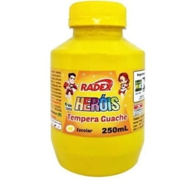 Tempera guache Radex é ideal para pintura com papéis, no trabalho didático e motor, artesanato e decorativo. Pode ser aplicado em papel, papel cartão, cartolina, gesso e madeira.