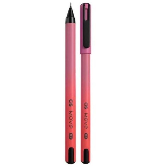 Caneta esferográfica Cis Move / Ponta tipo agulha / Ponta extrafina de 0.7mm / Tampa ventilada com clip / Cor da tinta: Vermelha / Registro Inmetro: 001698/2021.