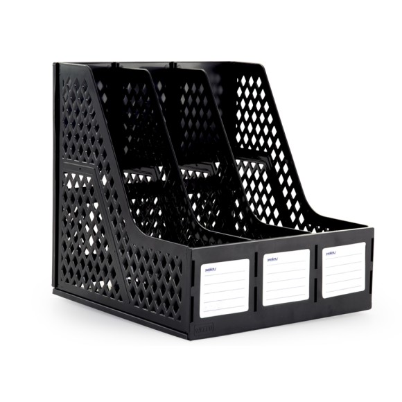 Organizador de pastas, revistas e livros triplo preto / Produto fabricado em poliestireno / Medidas: 25,5 cm x 25,5 cm x 26 cm
