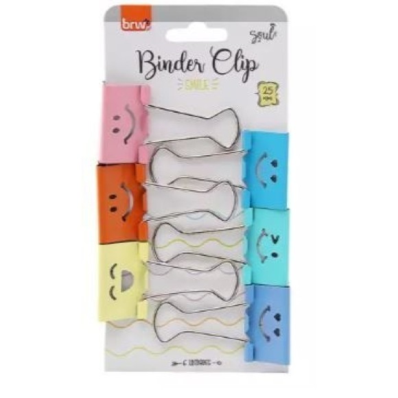 Clips para Papel Binder BRW Emoji / Contém: 6 unidades / Medidas: 25mm / Os binder são prendedores para papel, mas também podem ser usados para: fechar embalagens; organizar cabos; prender fotos; marcar páginas;etc.