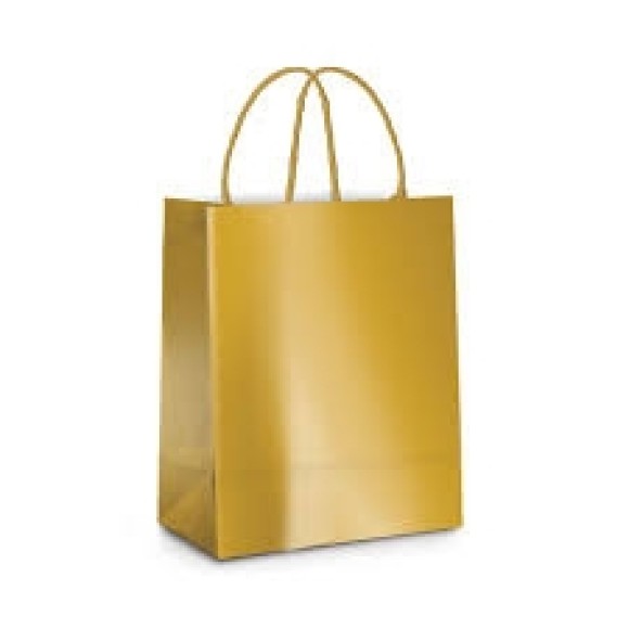 SACOLA DE PAPEL PARA PRESENTE MÉDIA DOURADA CROMUS