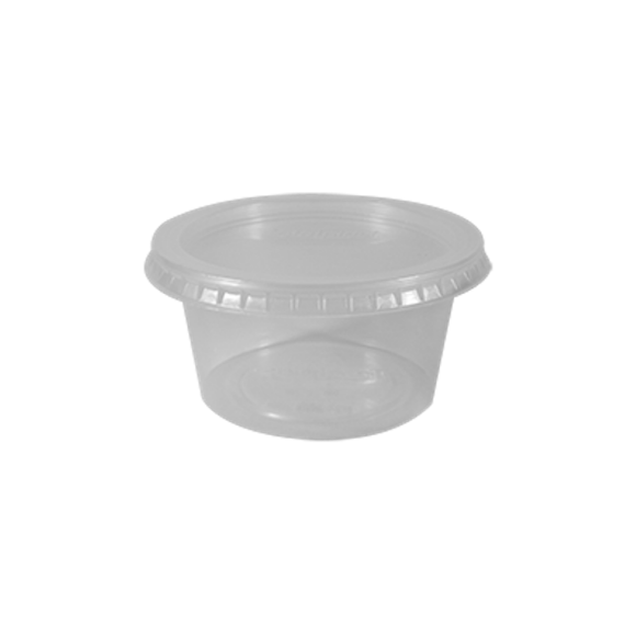 Embalagem pote redondo com tampa / Cor: Transparente / Capacidade: 200ml / Embalagem com 50 unidades.
