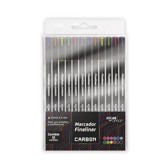 Especificação: Marcador Fineliner Carbon / Formato redondo / Ponta fina 0.5mm / Estojo com 12 cores.