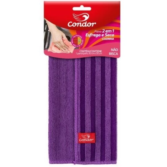 PANO DE MICROFIBRA 2 EM 1 ESFREGA E SECA 30X30 CONDOR