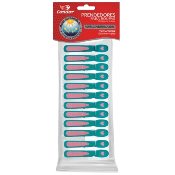 PRENDEDOR PARA ROUPAS PLÁSTICO EMBORRACHADO 12 PEÇAS CONDOR