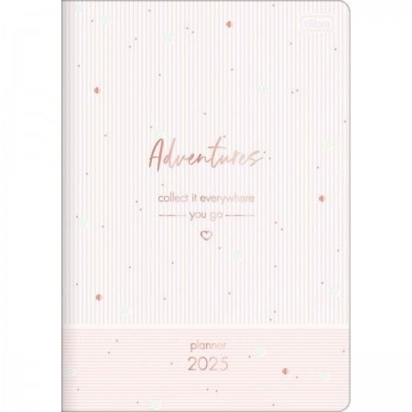 Detalhes: Capa flexível / Capa com detalhe metalizado e com relevo / Folhas para anotações / Folhas em papel creme / Visão anual e mensal / Formato: 178mm x 254mm / Gramatura: 90g/m² / 20 folhas.
