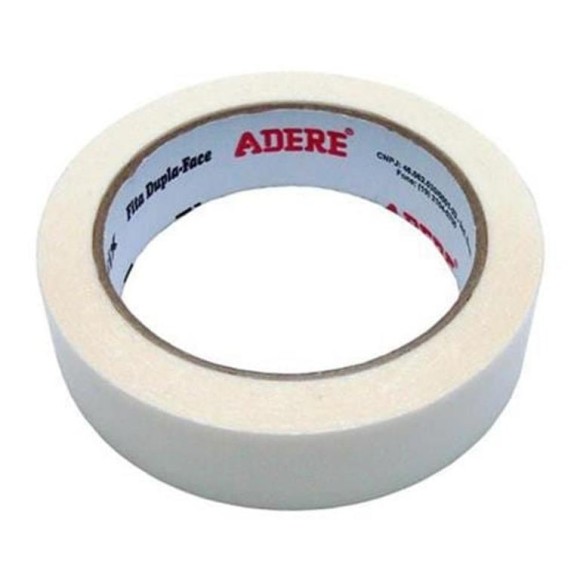 Fita adesiva dupla face branca / Uso em: trabalhos escolares, fechamento de envelopes, fixação de cartazes / Medidas: 25mm x 30m / Venda por unidade.