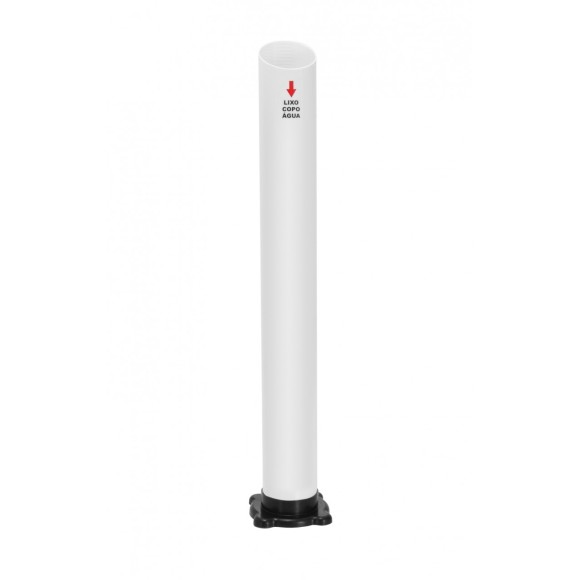 Lixeira de tubo para descarte de copos 180/200mL (água) / o tubo é extrusado em plástico poliestireno (PSAI) e a base é injetada em plástico polipropileno (PP) / Acompanha adesivos correspondentes / Capacidade: 150 copos de água (aproximadamente) / Tubo de água: 85mm (diâmetro) / Medidas: 730mm (altura) x 130mm (largura) x 130mm (profundidade).