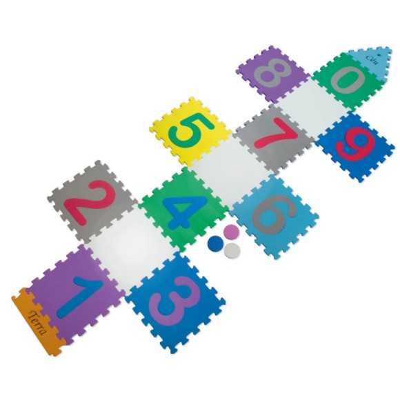 Ensina a sequência numérica de forma divertida e desenvolve a coordenação motora, além de quebra-cabeça, funciona como tapete / Dimensões: 31cm x 31cm x 10mm